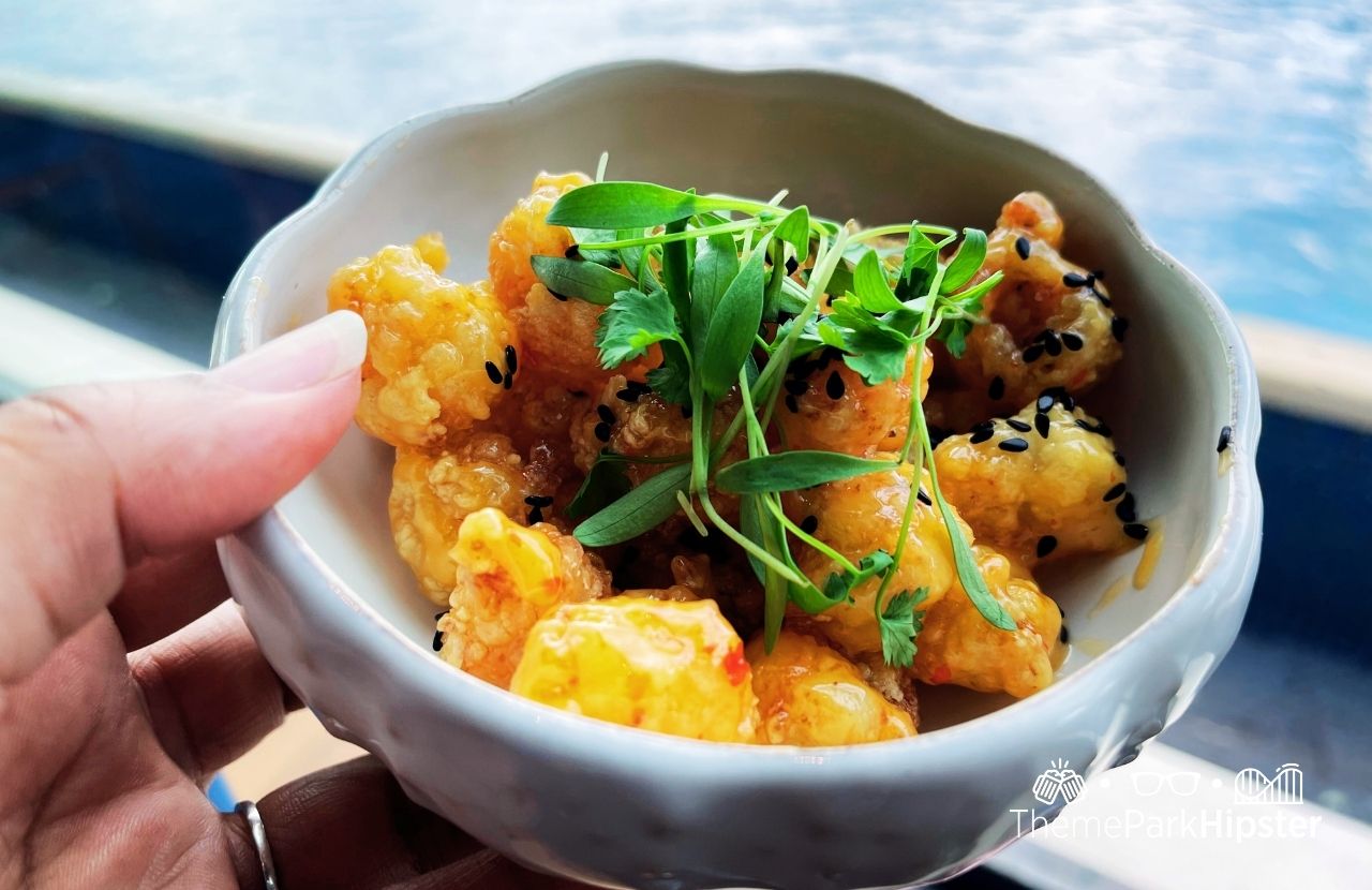 - Sweet & Spicy Shrimp: Crispy shrimp with chili sauce and sesame seeds. Basically, the “I’m not sharing this” starter.