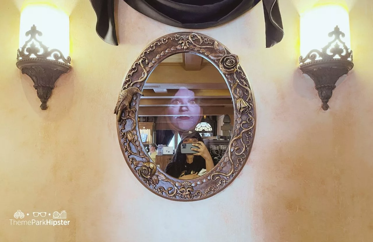 You can find the famous Hitchhiking Ghosts at the end of the ride inside your Doombuggy. Disney uses the Pepper’s Ghost illusion to pull off this trick.