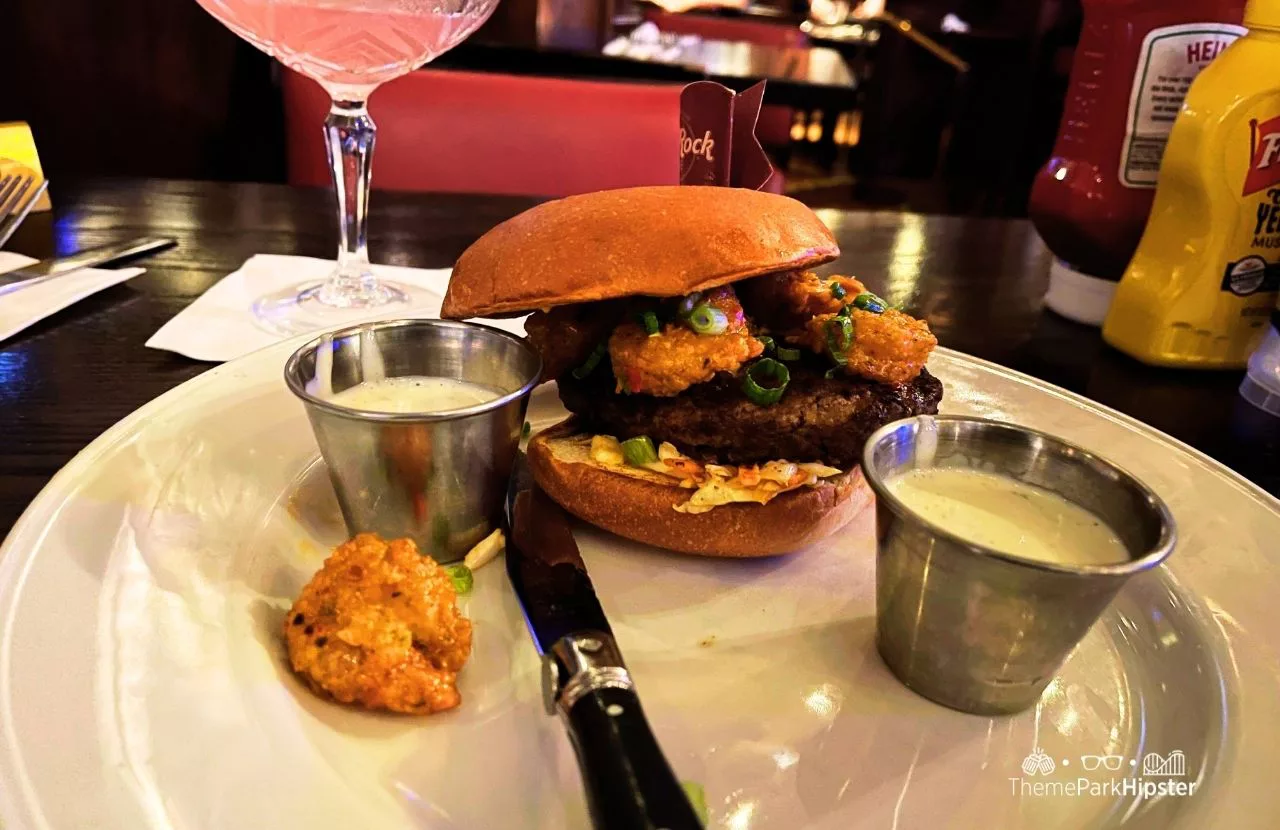 - Legendary® Burgers / Smash-style burgers: if you’re craving that classic theme-park-day meal that’s something hearty, salty, and satisfying, this is the lane. Hard Rock’s burger lineup is basically their signature. You can’t go wrong with any pick.