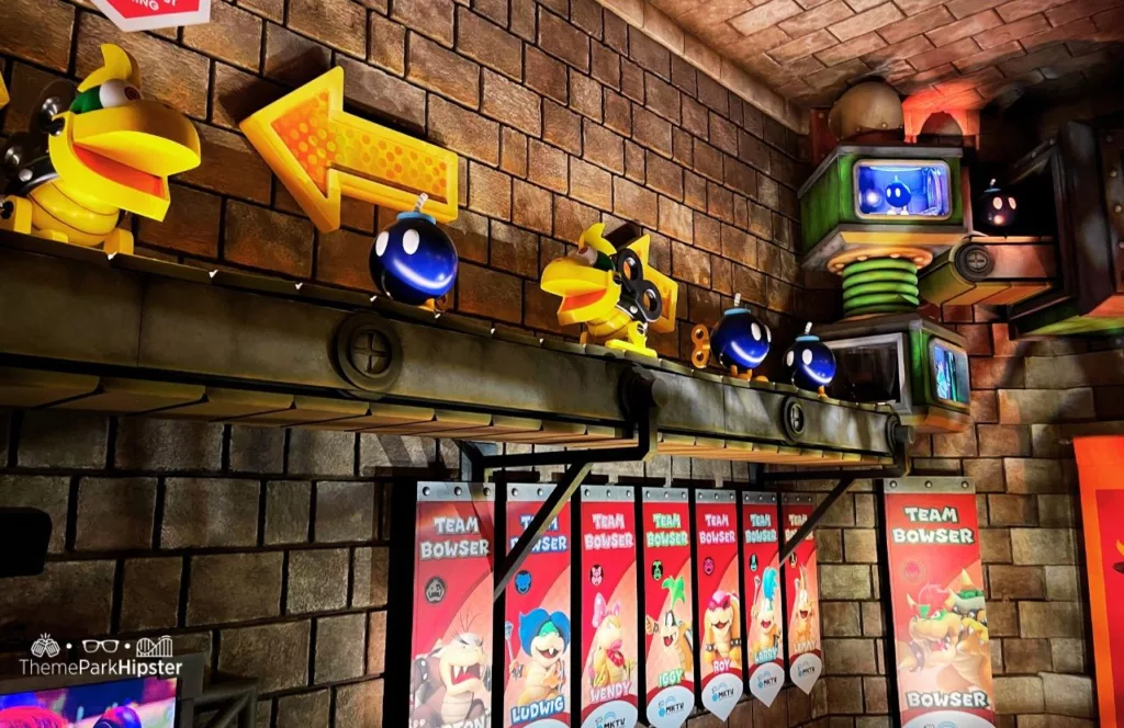 This is located in Bowser Jr.’s Lair to the right of the Mario Kart: Bowser’s Challenge attraction to play the game and test your skills!