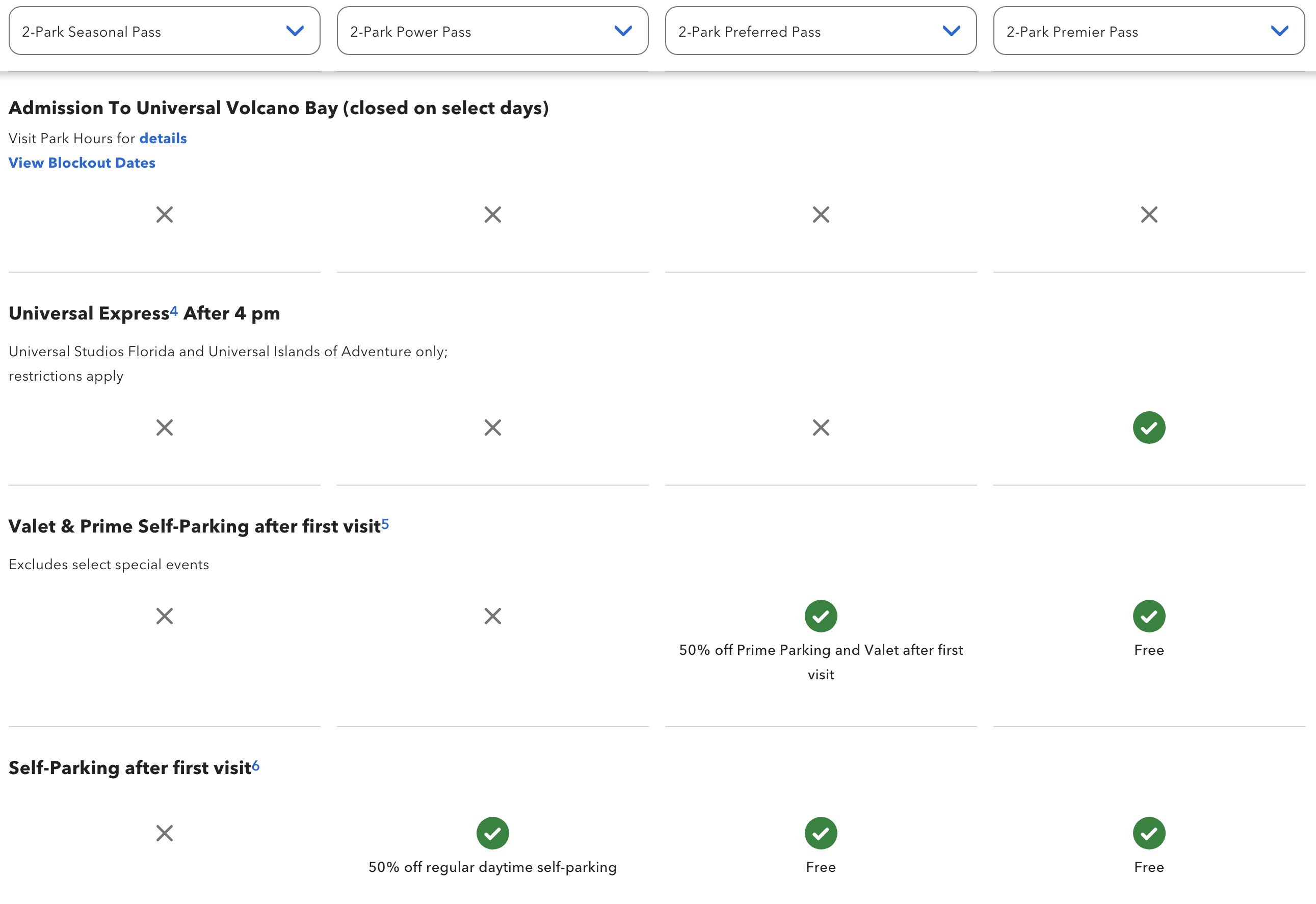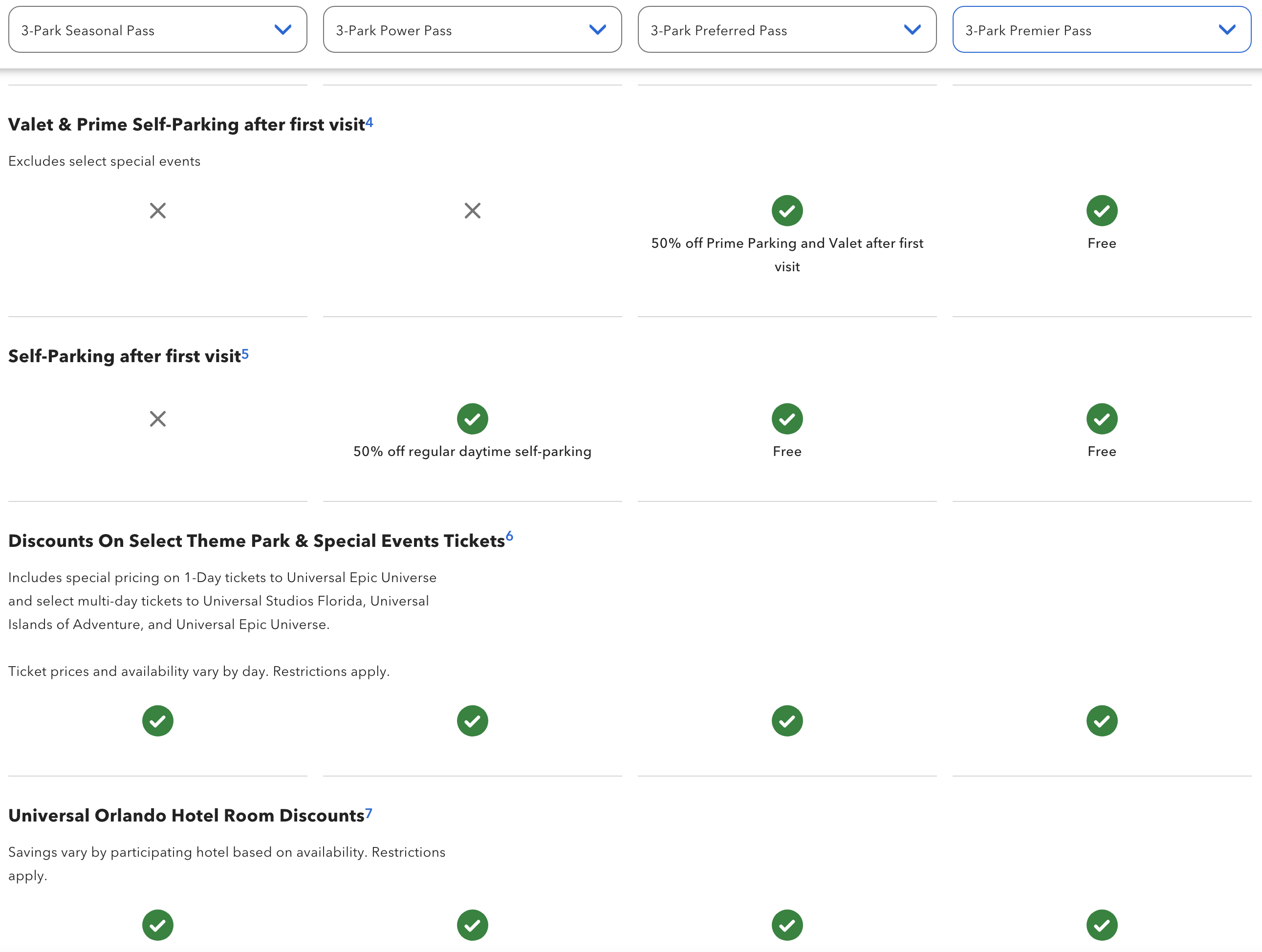 And what about the higher tier annual passes? They quickly pay for themselves if you plan on driving to Universal Orlando and self-parking.