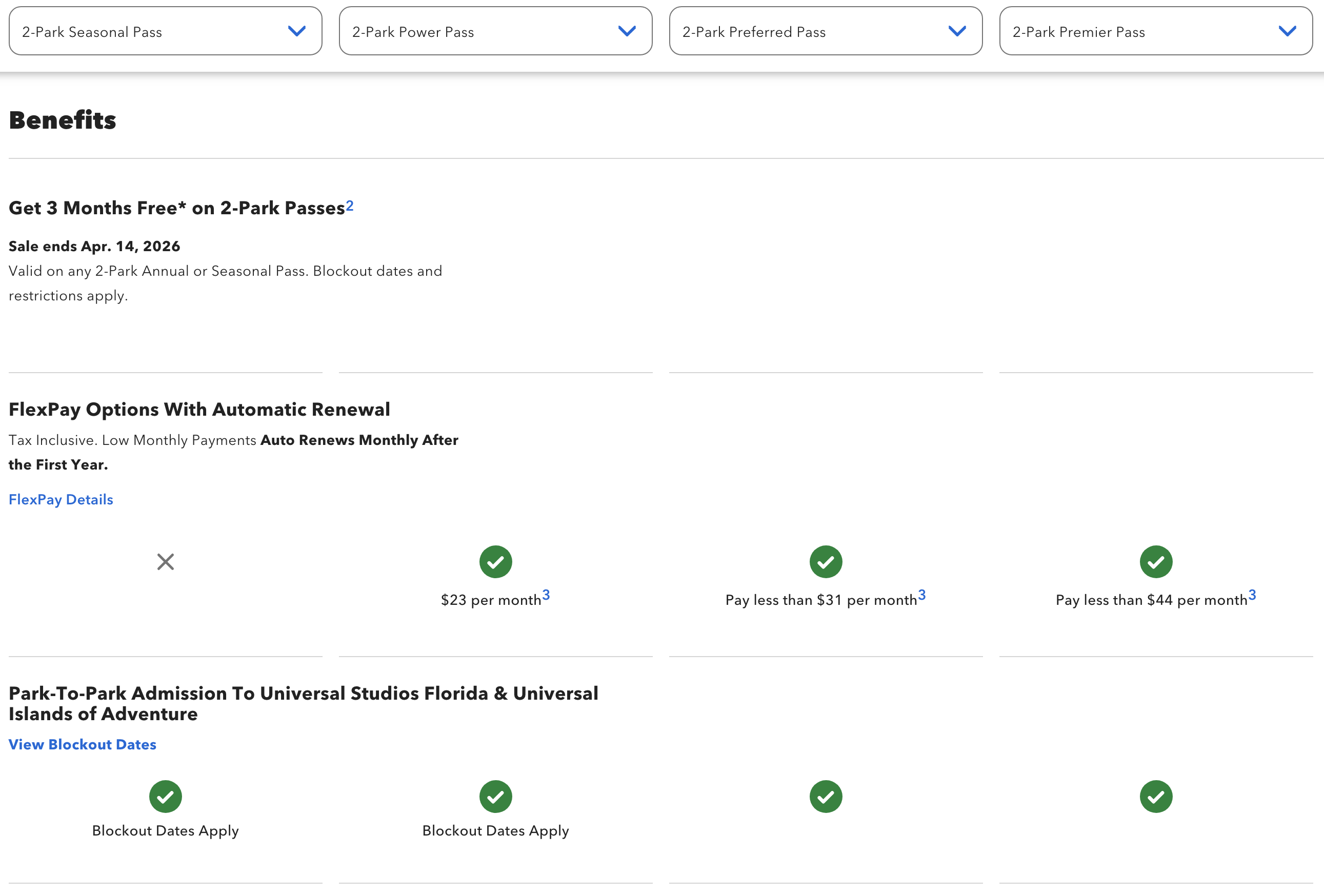 Let’s first go through the different Universal Annual pass tiers and what to expect from each one.